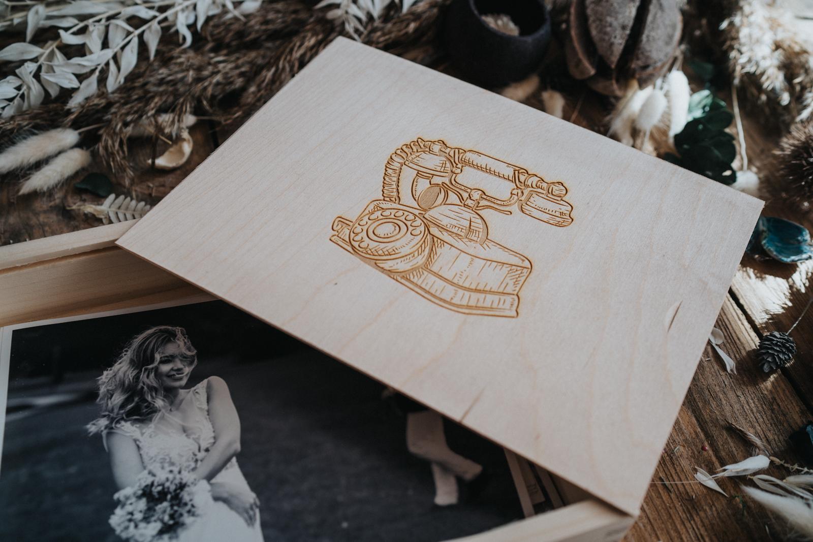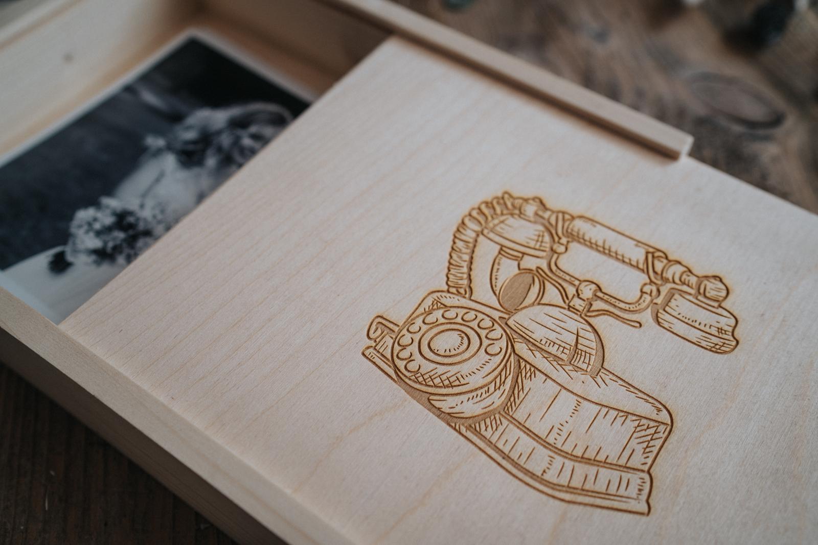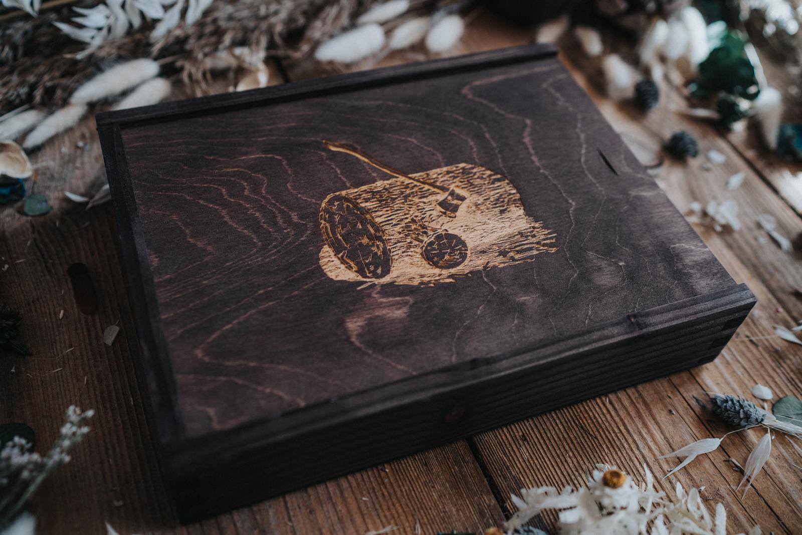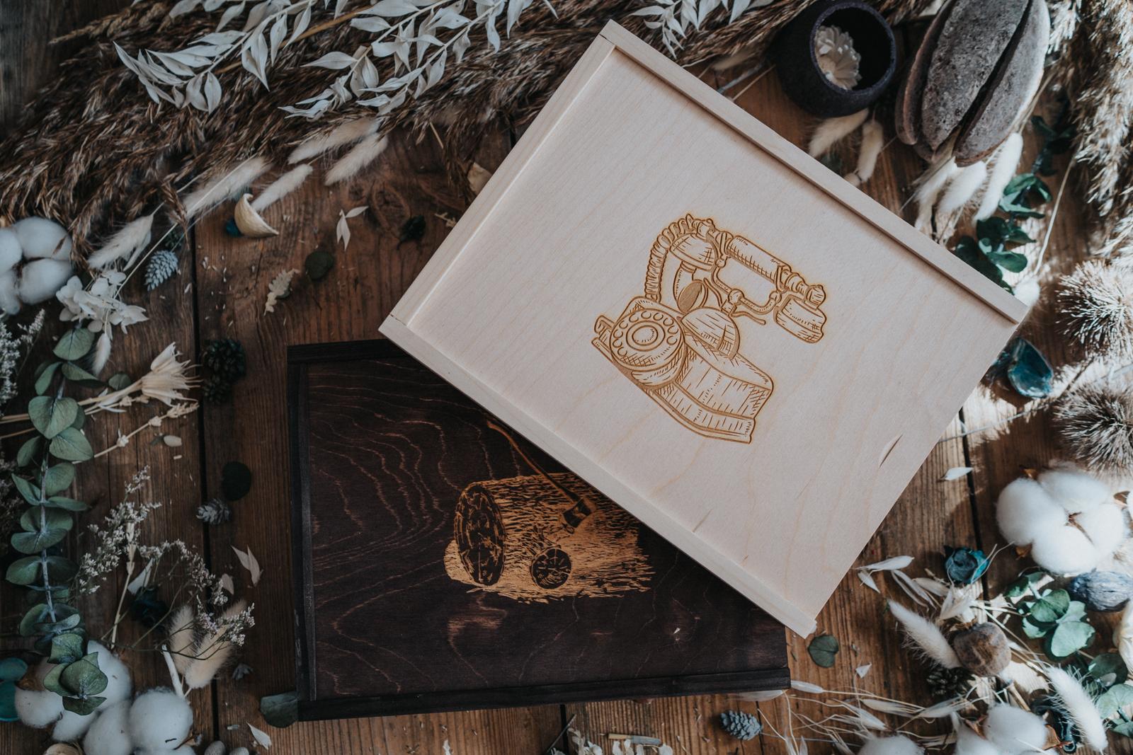 Na przodzie wieczka jest wykonywany grawer, wypalamy go głęboko aby było „czuć go pod palcem” 🙂